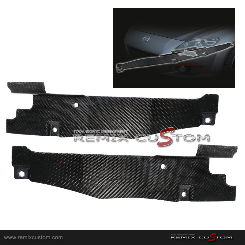 The track inspired design will reduce air turbulence and direct cool air flow towards the radiator. With increased air flow toward the radiator to allow the radiator to work more efficiently and raises its cooling ability. Pre-drilled for precise fitment to factory mounting points. Fit on 2003 2004 2005 2006 2007 Mazda RX8 Models ONLY."