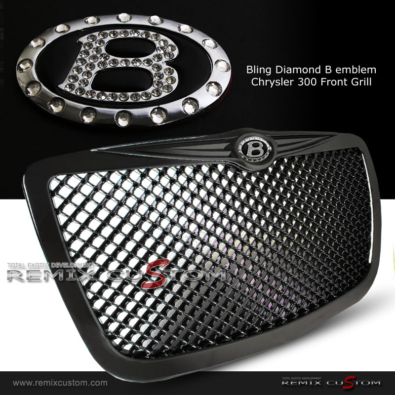 04-10 Chrysler 300C Mesh Front Grill with Bling "B" Emblem - Gunmetal Smoke