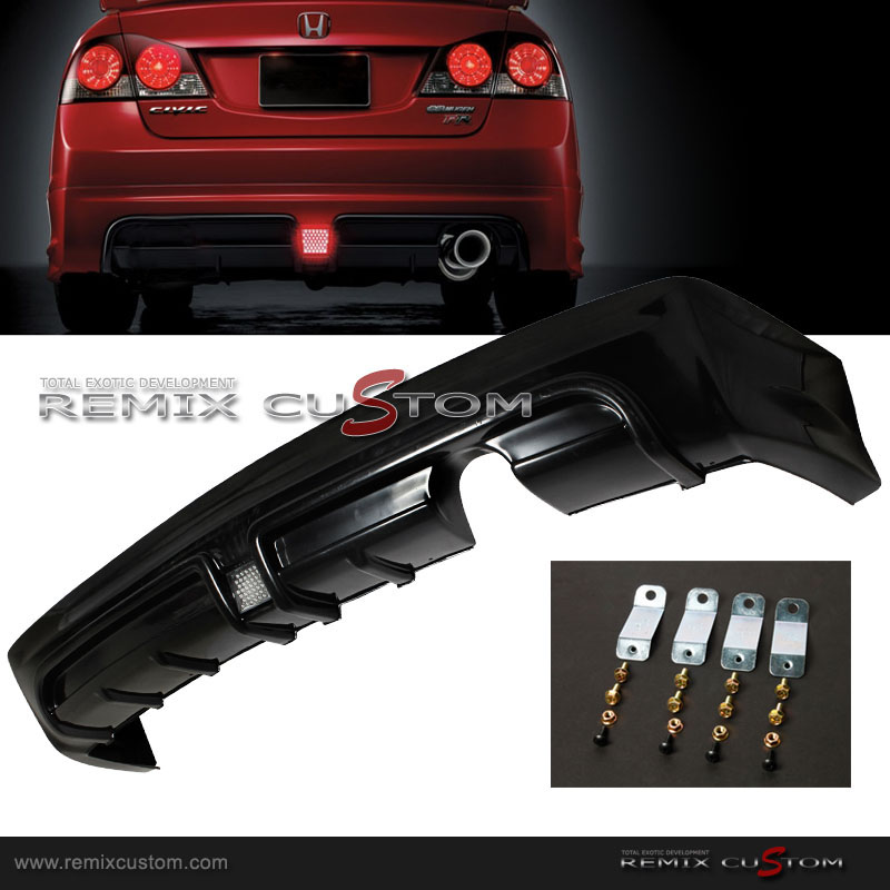 Brand New in Original Packaging. Made of high quality Poly Urethane with light weight design. Unlike Cheap ABS plastic for Fiber glass. Poly Urethane material is very flexible and will NEVER BREAK! Our body kit products are crafted with pinpoint precision, diligent care and top quality materials along with strict quality control standards to ensure products unparalleled by the competition. This product offers durability and flexibility not found in standard fiberglass products. This product is ready for paint. Professional Installation Strongly Recommended. If you are unsure about installing automotive accessories by yourself we recommend consulting with a body shop. Fits 06 07 08 09 10 11 Honda Civic 4DR Sedan US-SPEC FA chassis rear bumper.