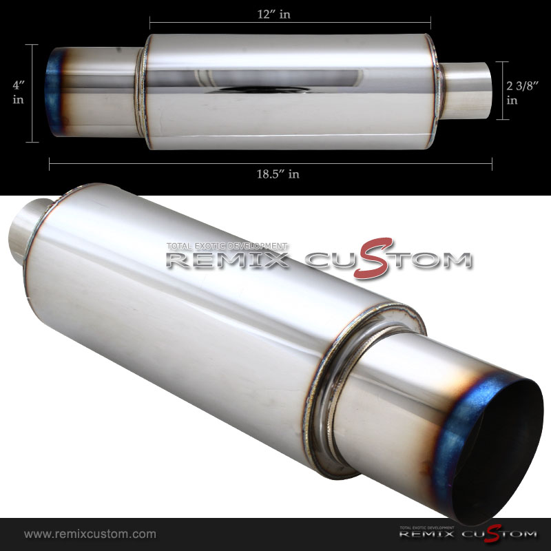 Full T-304 Austenintic Stainless Steel Construction. Designed and constructed to maximize your vehicle's power with this straight through concept. Hi-Power Muffler incorporate a race inspired angled mounted stainless steel muffler and piping design. ULTRA FAST FLOW STRAIGHT THOUGHT DESIGN HIGH GLOSS POLISH FINISH SPORTY DEEP TONE with a smooth & deep sound
