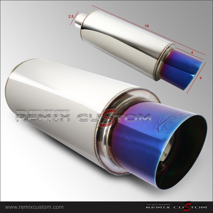 Universal 2.5 Inlet / Outlet / 4" Slant Burnt Tip Muffler with Removable Silencer