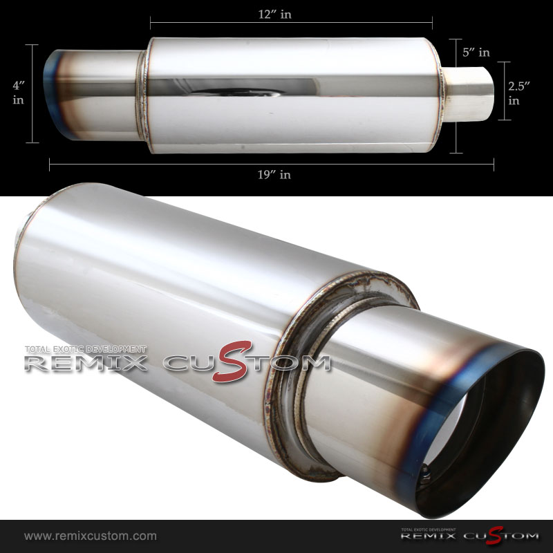 Universal 2.5" Inlet / 4" Slant Burnt Tip Muffler