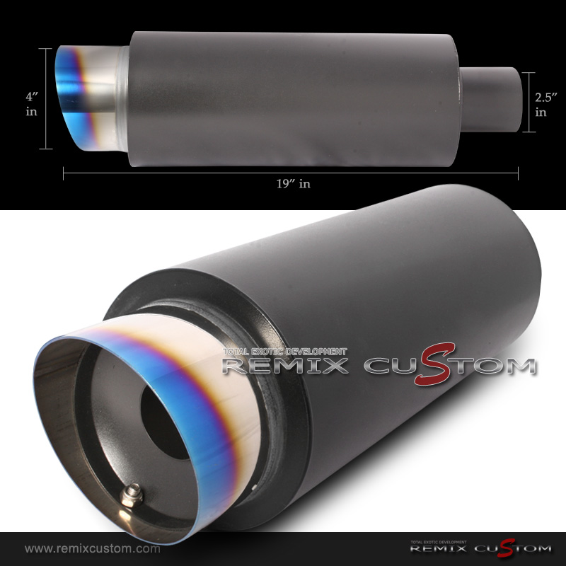 Universal 2.5 Inlet / Outlet / 4"Slant Burnt Tip Muffler with Removable Silencer
