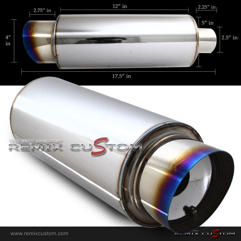 Universal 2.5" Inlet / 4" Slant Burnt Tip Muffler