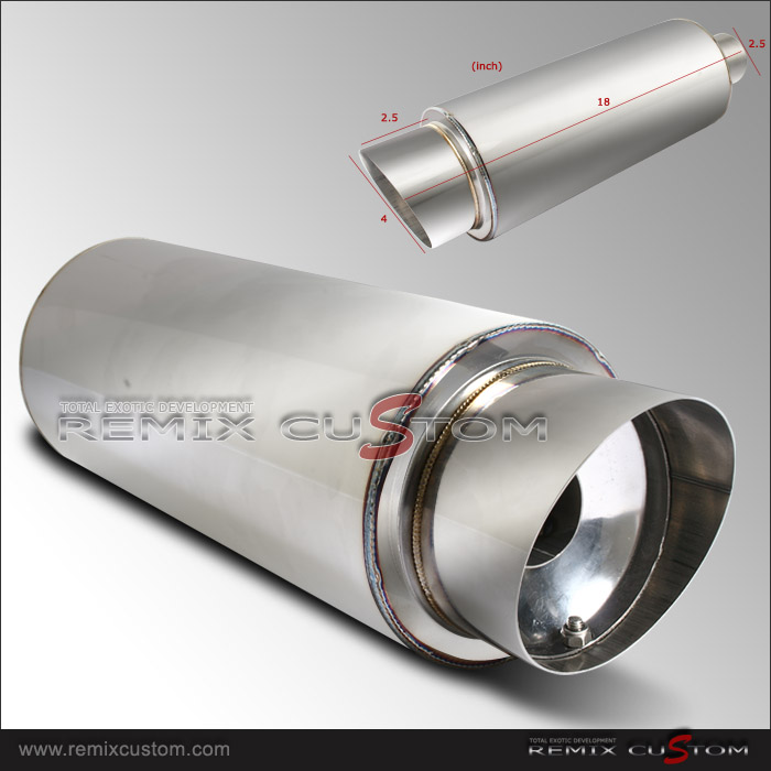 All our Performance Mufflers are made from the highest quality polished stainless steel. Designed and constructed to maximize your vehicle's power with this straight through concept. Full T-304 Austenintic Stainless Steel Construction. Hi-Power Muffler incorporate a race inspired angled mounted stainless steel muffler and piping design.