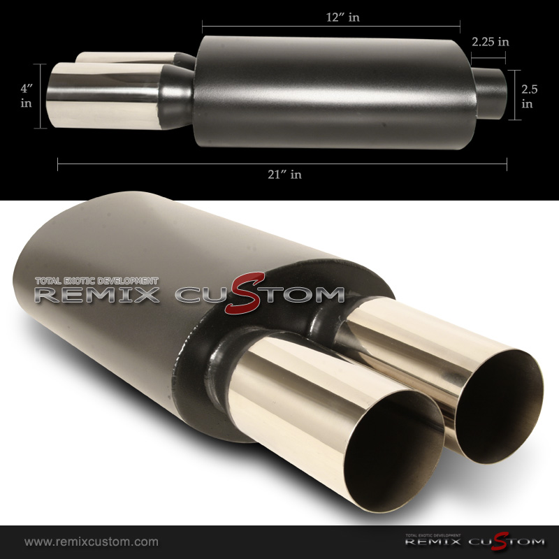 Universal 2.5" Inlet / Dual 3" Flat Tips Muffler