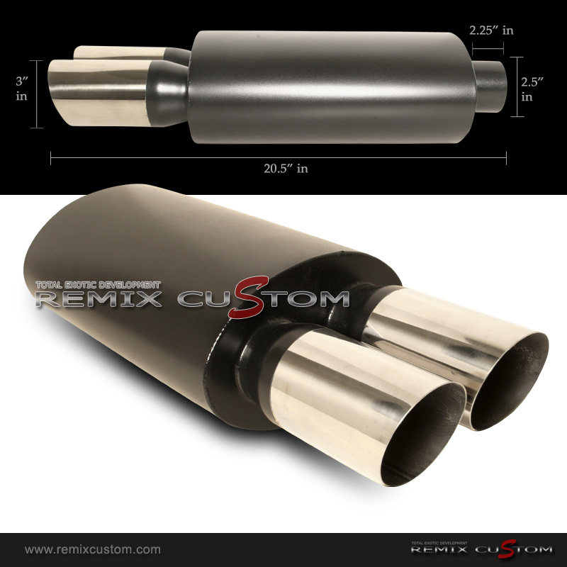 Universal 3" Slant Tips 2.5" Inlet Dual Tip Black Muffler