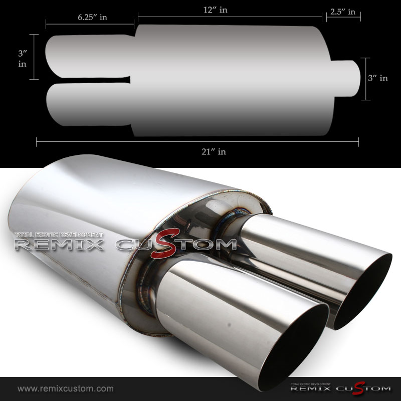 Universal 3" Inlet / 3" Dual Slant Tip Muffler