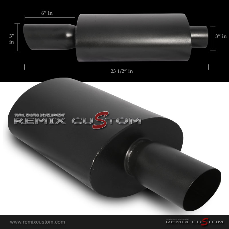 Universal 3" Slant Black Tip / 2.5"Inlet / Longer Body Black Muffler