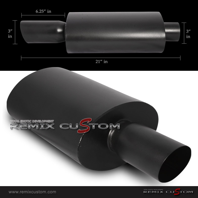 Universal 3" Inlet / 3" Tip Black Muffer Black Muffler