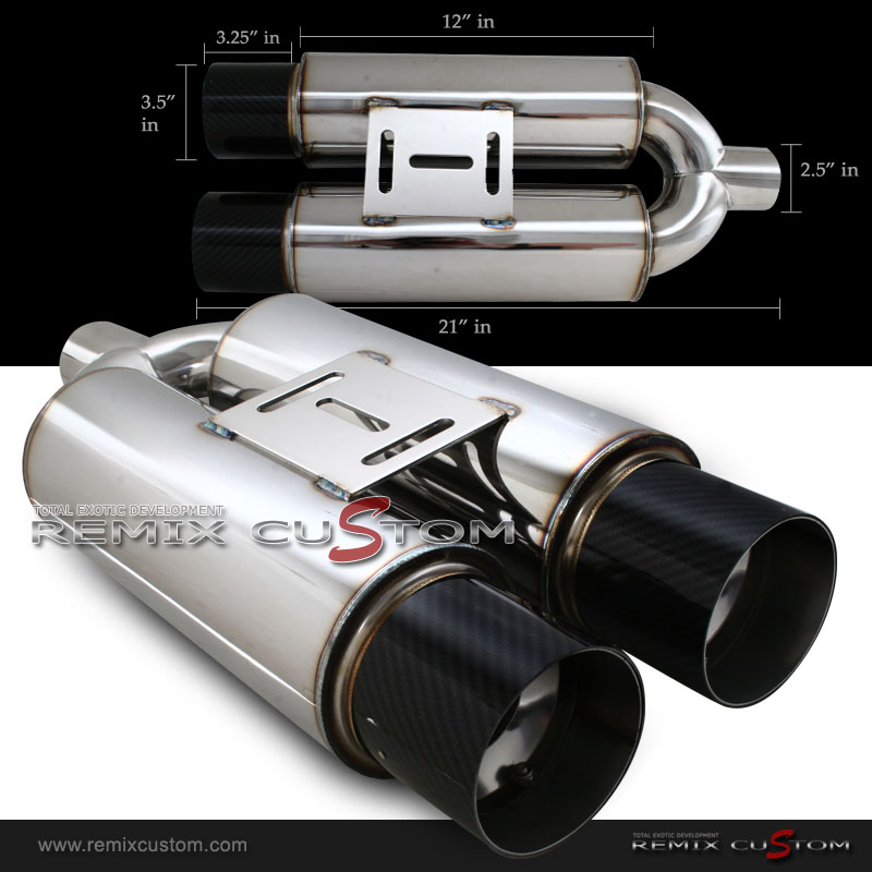 Universal Dual 3.5" Flat Carbon Tip 2.5"In/Outlet Exhaust Muffler