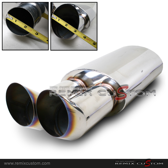 Universal DTM Style 2.5" Inlet Stainless Muffler with Dual 3" Color Tip