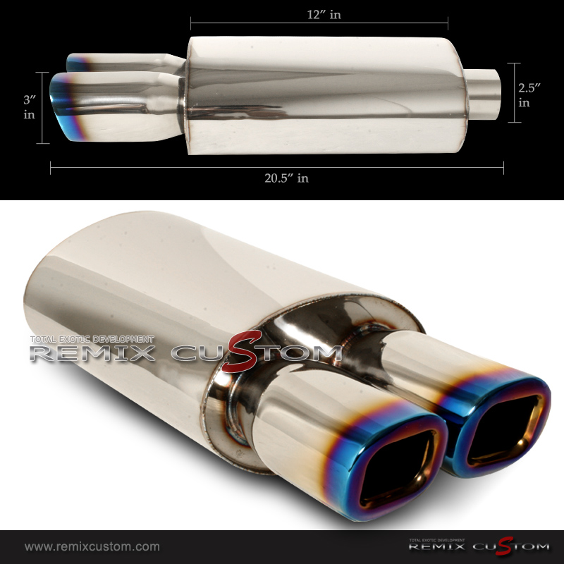 Universal Dual Square 2.5" Inlet BlueTip Remus Style Muffler