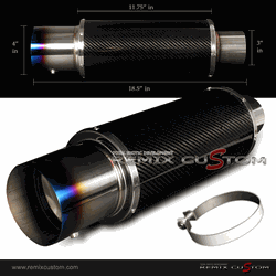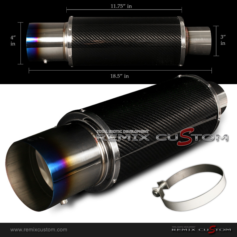 Universal 3" Inlet 4" Flat Burnt Tip Carbon Muffler