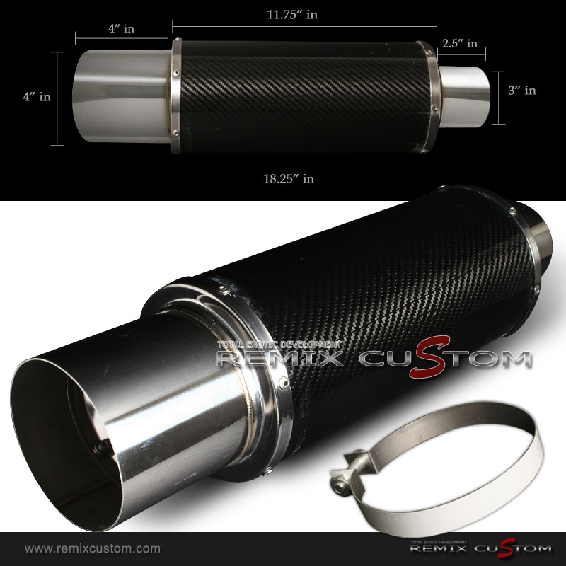 Universal Carbon Fiber 3" Inlet / 4" Flat Chrome Tip Muffler