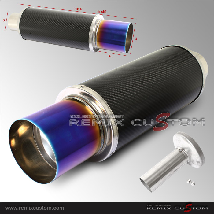 Universal Carbon Fiber 3" Inlet / 4" Flat Blue Tip Muffler