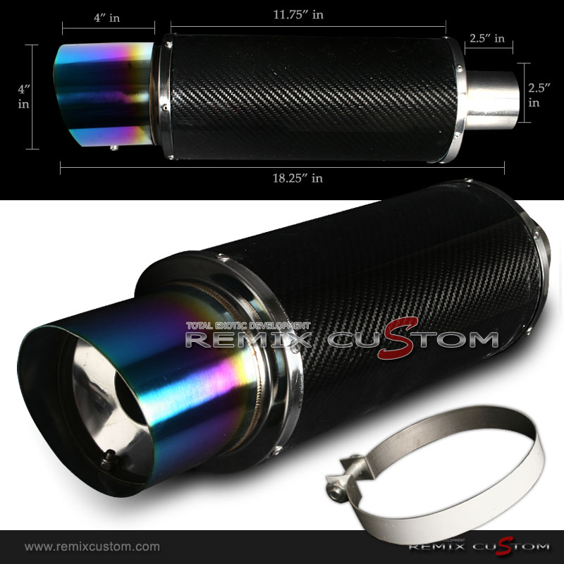 Universal Carbon Fiber 2.5" Inlet / 4" Rainbow Slant Tip Muffler