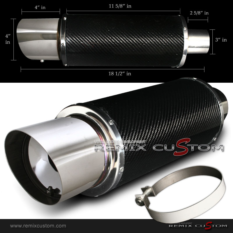 Universal Carbon Fiber 3" Inlet / 4" Slant Tip Muffler
