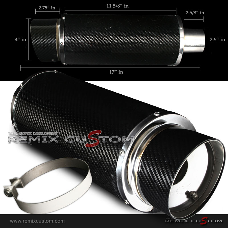 Universal 2.5"Inlet / Outlet 4" Flat Tip Full Carbon Fiber Muffler w/ Silencer