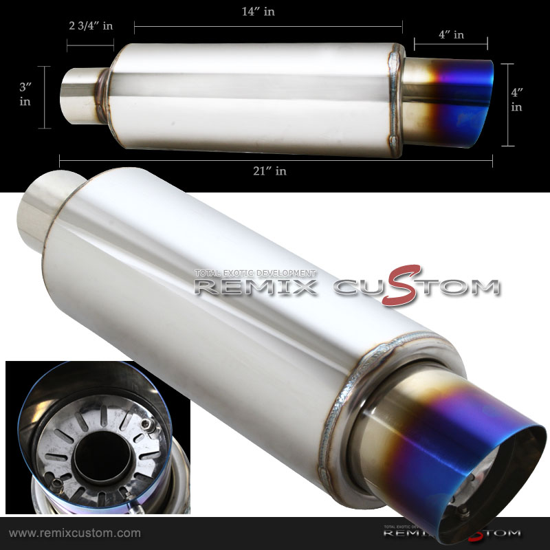 Full T-304 Austenintic Stainless Steel Construction. Designed and constructed to maximize your vehicle's power with this straight through concept. Hi-Power Muffler incorporate a race inspired angled mounted stainless steel muffler and piping design. ULTRA FAST FLOW STRAIGHT THOUGHT DESIGN HIGH GLOSS POLISH FINISH SPORTY DEEP TONE with a smooth & deep sound