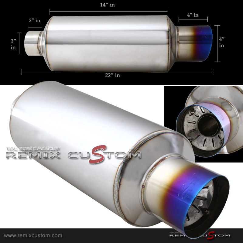 Full T-304 Austenintic Stainless Steel Construction. Designed and constructed to maximize your vehicle's power with this straight through concept. Hi-Power Muffler incorporate a race inspired angled mounted stainless steel muffler and piping design. ULTRA FAST FLOW STRAIGHT THOUGHT DESIGN HIGH GLOSS POLISH FINISH SPORTY DEEP TONE with a smooth & deep sound