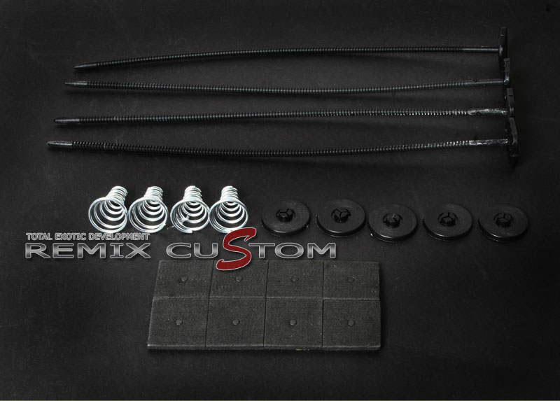 This kit will work with all our electric fans plus many others out there. Includes 4 each of the mounting tabs, nylon locking washers, and threaded ties. This Kit will complete your mounting chores.This kit includes 4 mounting straps / 4 strap locks / 8 mounting pads / 4 tension springs.