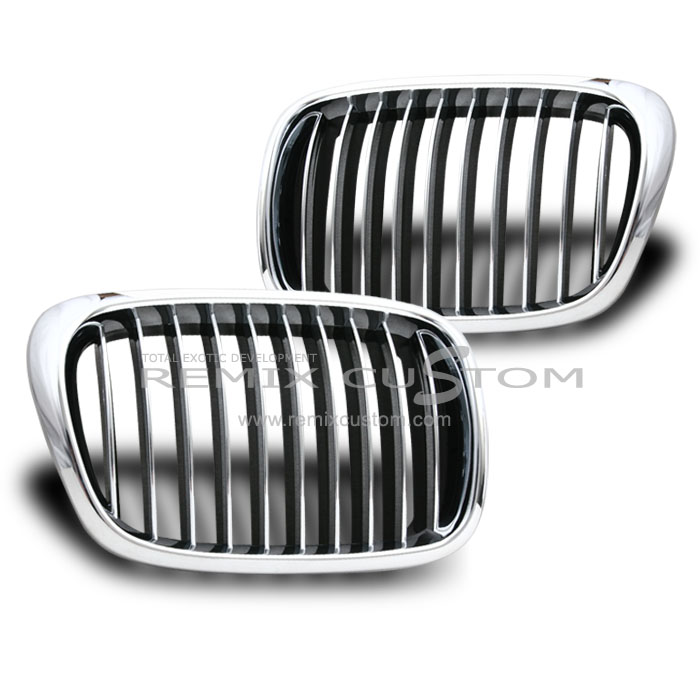 Brand New Chrome Finished Wide Vertical Design Front Grill for 97-03 BMW E39 5-Series. Made by durable high quality ABS plastic construction. Give Your Car A Custom Racer Look and Protect Your Car Radiator, Intercooler, & Other Vital Engine Components. Direct Bolt On, Easy To Install. When It Comes to Manufacturing Quality Product, Remix Custom Ensure Precise Fitment & Quality Design, While Providing Low-Price to our Customers. The Grill is securely mounted by the original screws & nuts of the OEM grill, no wire ties are used. Installation should take about 1 1/2 hours. If you are unsure about installing automotive accessories by yourself, we recommend consulting wtih a body shop or restyle.