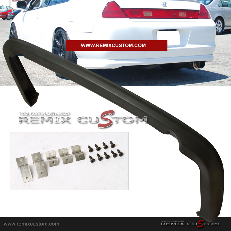 Brand New in Original Packaging. Made of high quality Poly Urethane with light weight design. Unlike Cheap ABS plastic for Fiber glass. Poly Urethane material is very flexible and will NEVER BREAK! Our body kit products are crafted with pinpoint precision, diligent care and top quality materials along with strict quality control standards to ensure products unparalleled by the competition. This product offers durability and flexibility not found in standard fiberglass products. This product is ready for paint. Professional Installation Strongly Recommended. If you are unsure about installing automotive accessories by yourself we recommend consulting with a body shop. Fits 98 99 00 Honda Accord coupe rear bumper.