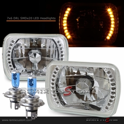 Universal 7"x6" Diamond Cut DRL SMDx20 Yellow LED Headlights