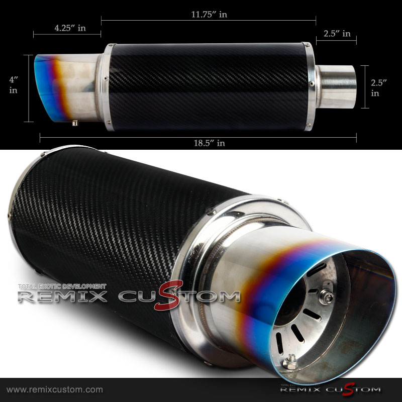 Universal 2.5" Inlet Carbon Exhaust 4" Slant Burnt Tip Muffler
