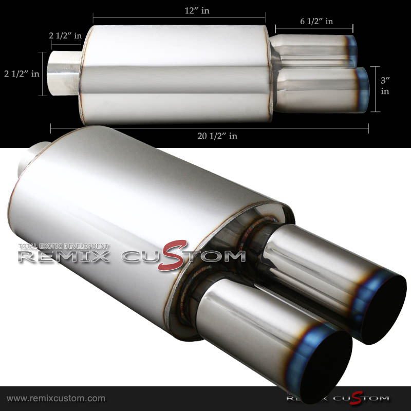 Universal Dual Muffler 3" Burn Tip 2.5"In/Outlet