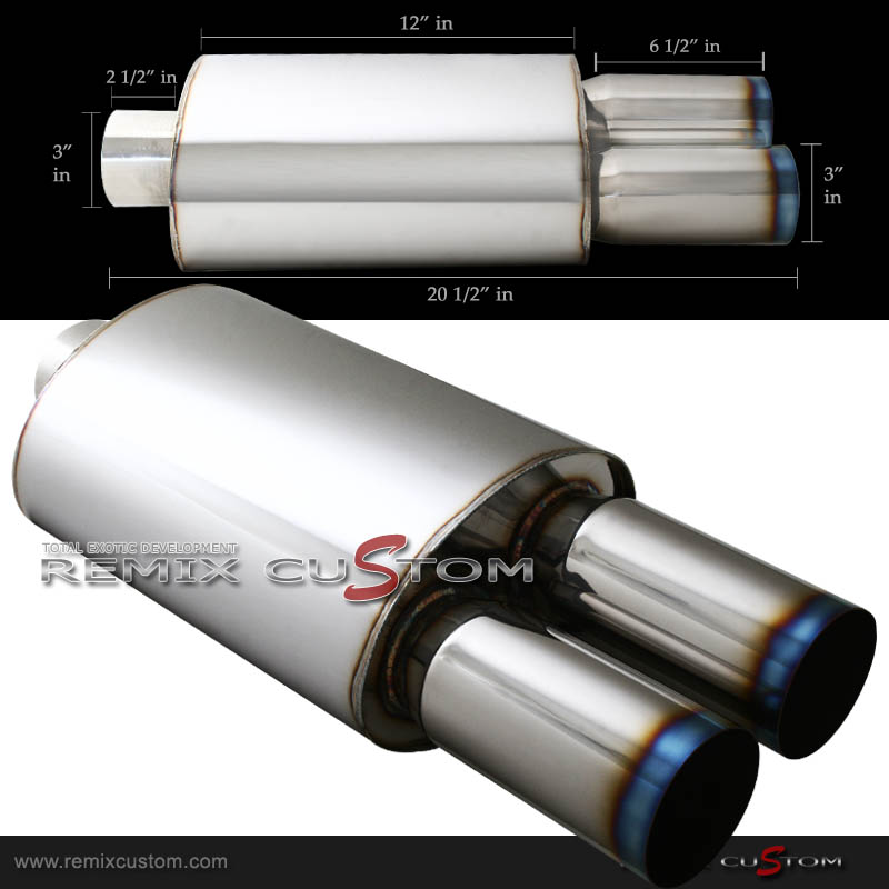 Universal Dual Muffler 3" Burn Tip 3"In/Outlet