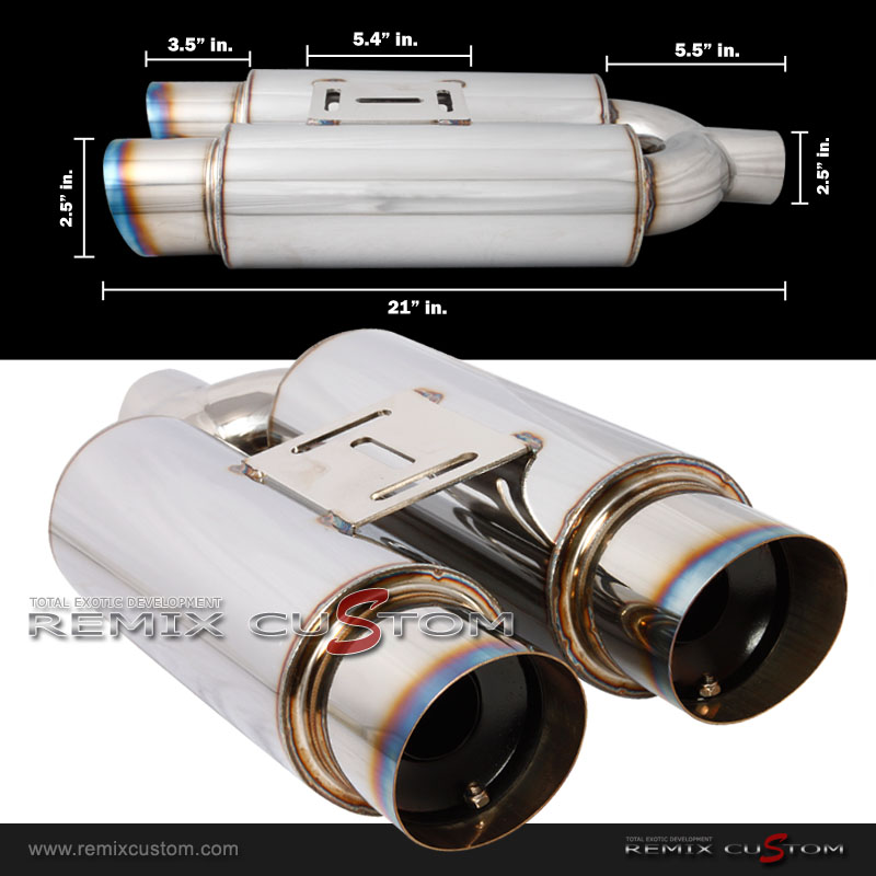 Universal 2.5" Dual Slant Titanium Burnt Tip Muffler