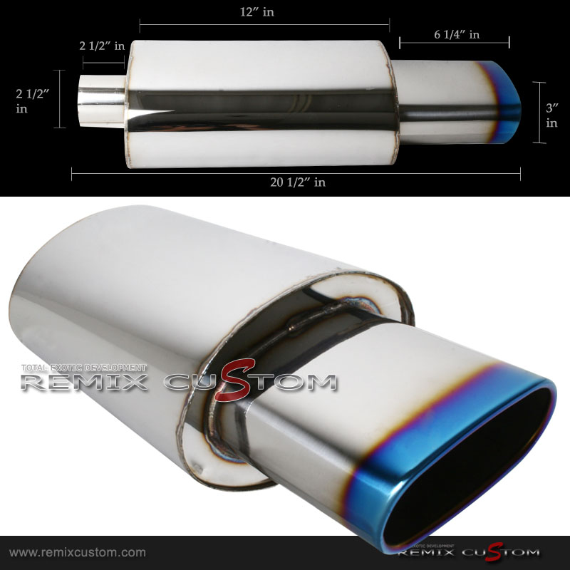 Universal Oval Square Burnt Tip Euro Type Muffler 2.5" Inlet